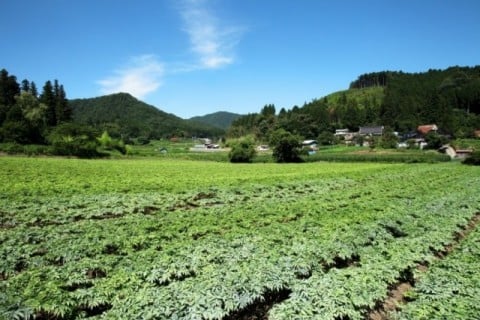 在来種(和玉)のおいては日本一の産地であり、当農園もこの冷涼な気候を生かして 最大作付け時こんにゃく10ヘクタール、切り花2ヘクタール(草花中心)、花木(高野槇)2ヘクタール栽培しております。